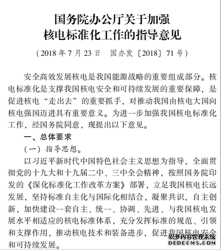 國務(wù)院辦公廳關(guān)于加強 核電標準化工作的指導(dǎo)意