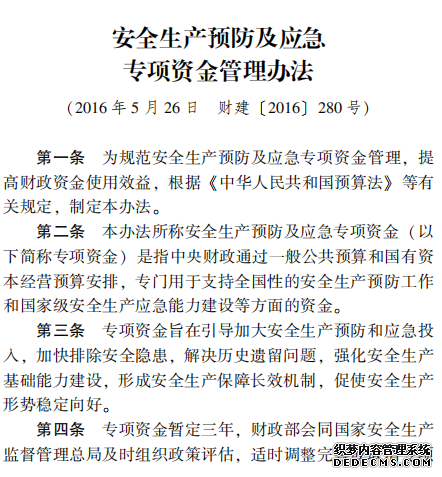 安全生產(chǎn)預(yù)防及應(yīng)急 專項資金管理辦法